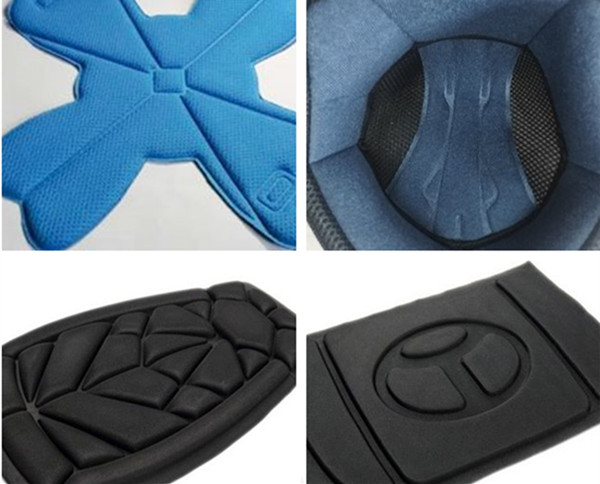 常見的海綿、EVA、XPE、EPP等復合材料頭盔內襯采用高周波熱合機(也叫熔斷機)加工成型。傳統加工工藝需要烤箱加壓機組合,人工需要放料到烤箱,然后取出熱料放到壓機上壓痕成型,再取出進行裁切處理。高周波熱合機可以采用熔斷模式,片料直接成型完整形狀。