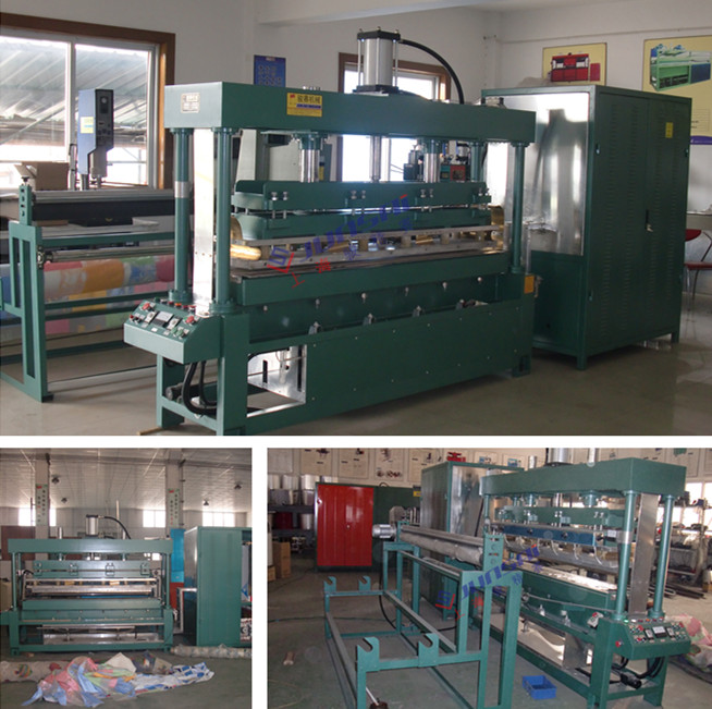 高頻浴簾機 浴簾機是浴簾熱合的選擇的設備,本機屬高頻設備,由電子管自激振蕩器產生高頻電磁場,被加工塑膠件在上、下電極間的高頻電磁場中,其內部分子被熔化而相互運動磨擦自身產生熱量,在模具的壓力下達到熔接的目的。浴帳熱合機利用高頻能量把兩件或多件塑膠工件熔接起來,透過高周波使物料生熱及熔合在一起。經這種熔接方法而成的工件,堅固度和膠料本身的堅固度一樣。